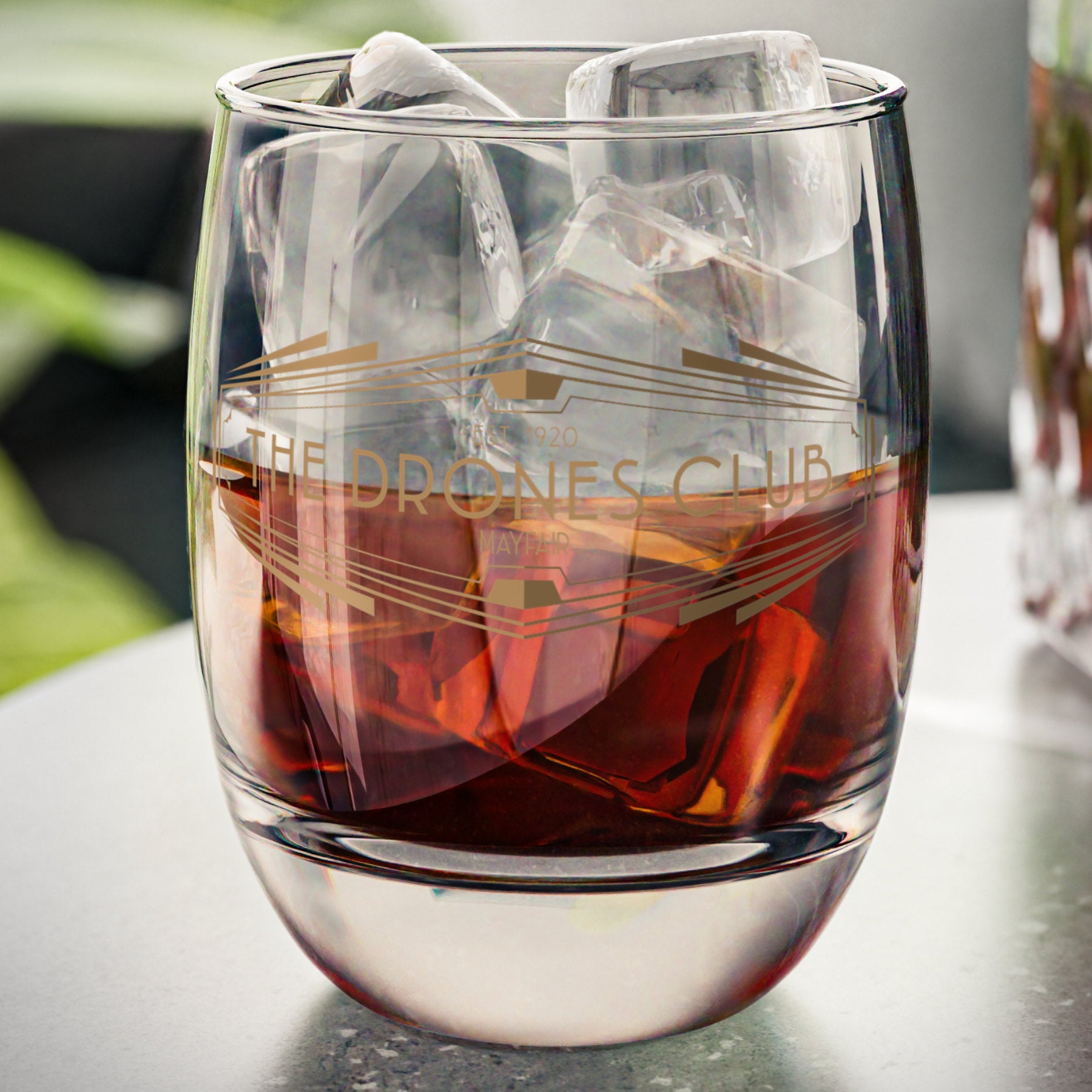 Raise a glass to Bertie, Bingo and the rest of the Mayfair mischief-makers with our Drones Club 6-ounce rocks glass. Inspired by the fabled gentleman’s club in P. G. Wodehouse’s Jeeves & Wooster stories, the Art-Deco crest reads.