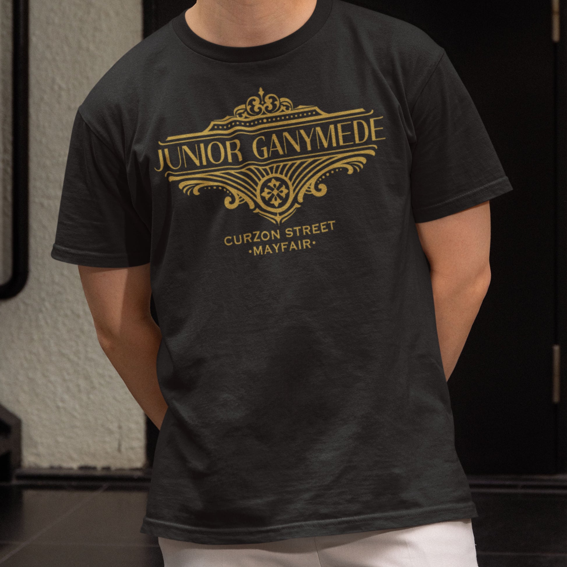 Show your allegiance to the most discreet and distinguished gentlemen’s club in Mayfair with this Junior Ganymede Club T-shirt — a tribute to the world of P. G. Wodehouse.